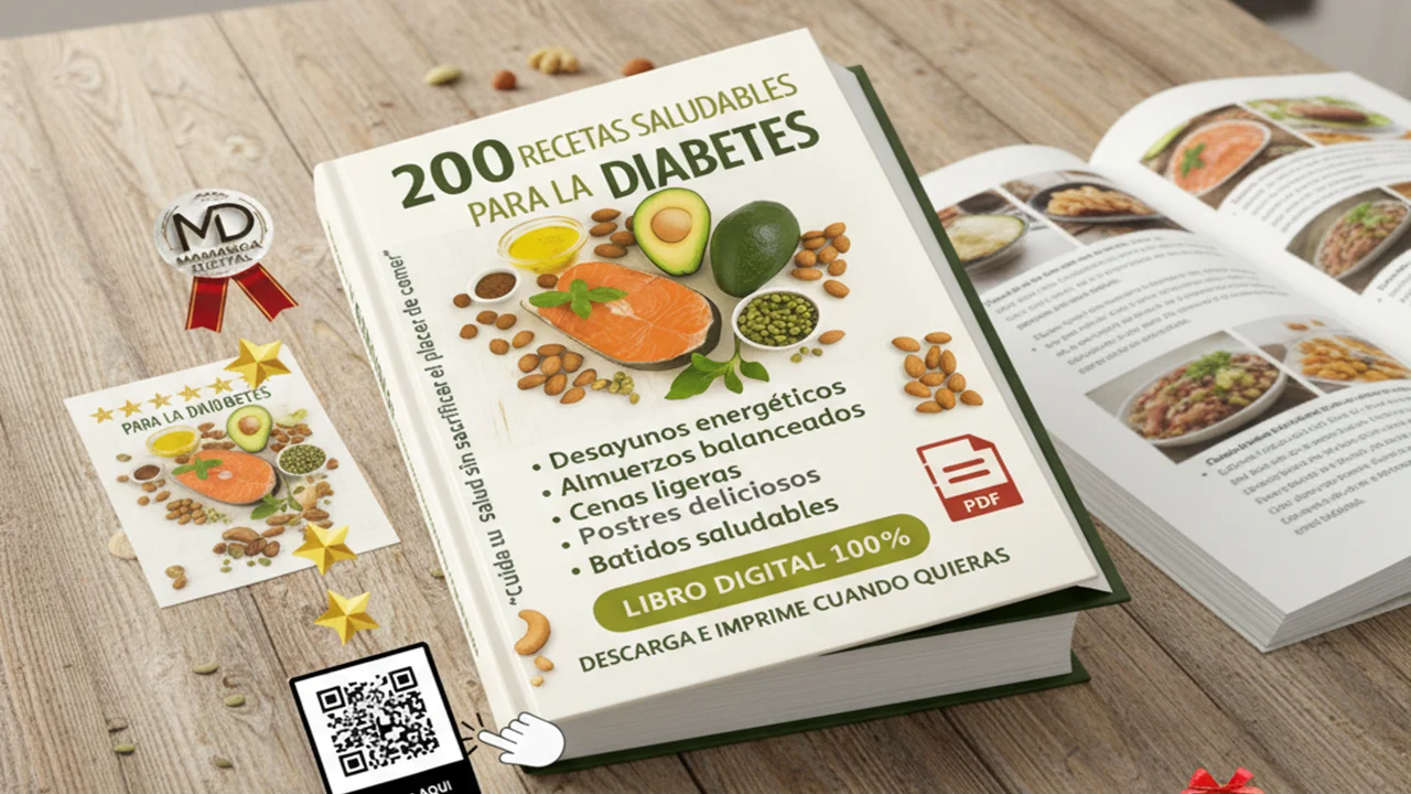 Guía honesta sobre el libro “200 Recetas Saludables para la Diabetes” y cómo usarlo para mejorar la alimentación diaria de personas con diabetes.