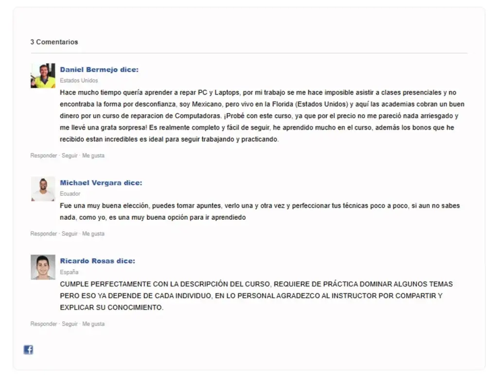 Siempre quise hacer reparaciones. Este curso es detallado y muy profesional. Ya reparé mis dos equipos y estoy listo para iniciar mi propio negocio desde casa. ¡Lo recomiendo al 100%!